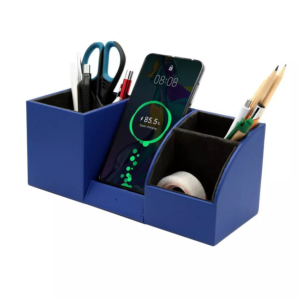 Настольный органайзер Boss c беспроводной зарядкой и световым индикатором. Для работы или дома, сочетающий в себе подставку для канцелярских принадлежностей и мелких аксессуаров. Вход: 9V/1.67A/5V/2A USB 2.0. Выход: Беспроводная зарядка 10W. В комплекте кабель USB и инструкция.