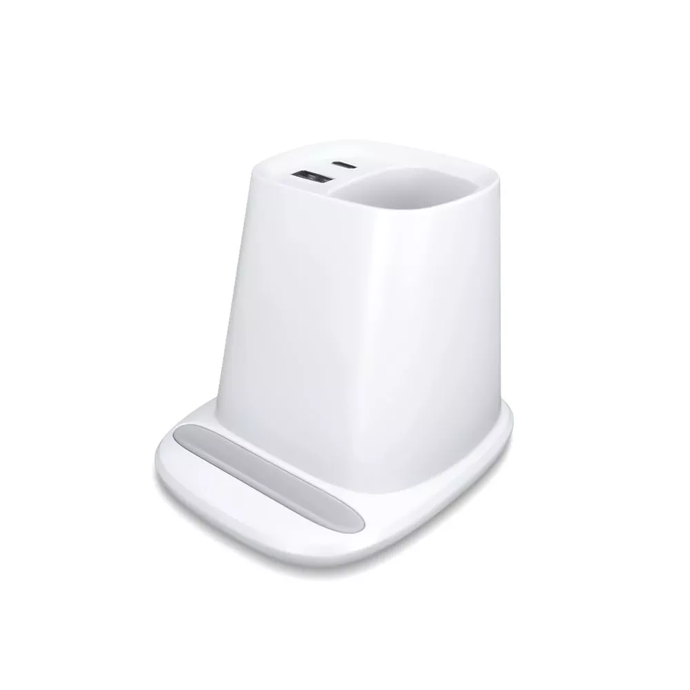 Если вы ищите промосувенир, который на 100% будет долгие годы напоминать о вашем бренде, то Настольный органайзер Limerick – отличная идея. Благодаря данному подарку, его получатель организует свое рабочее пространство, сможет заряжать свой телефон при помощи беспроводной зарядки, а летний жаркий день немного освежиться благодаря вентилятору в комплекте. Комплекталия: кабель Type C, инструкция на русском языке, вентилятор, фонарик. Электропитание: 5V/2A. Выход: Бепроводная зарядка - 5w, USB - 5V/2A(Max).