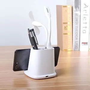 Настольный органайзер Rick - идеальный выбор для тех, кто ищет долговечный промосувенир, способный на все 100% напоминать о бренде. Этот функциональный аксессуар поможет организовать рабочее пространство своего владельца и обеспечить комфорт даже в мелочах. Беспроводная зарядка телефона и встроенный вентилятор станут приятными дополнениями, позволяющими облегчить рабочие будни и сделать их более продуктивными. А наличие светильника дает возможность мягкого освещения рабочей поверхности стола. Ваш бренд останется на виду и в сердце благодаря настольному органайзеру Rick, который станет незаменимым помощником на рабочем столе.