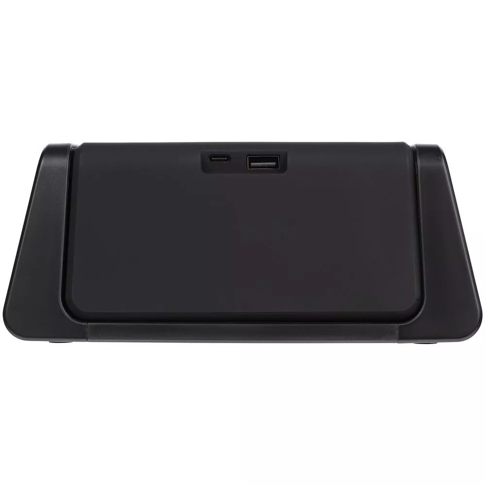 Зарядная станция совместима со всеми мобильными устройствами, поддерживающими технологию беспроводной зарядки Qi. Зарядка начнется автоматически при размещении смартфона на индукционной площадке. USB-порт для проводной зарядки расположен на задней стенке устройства.