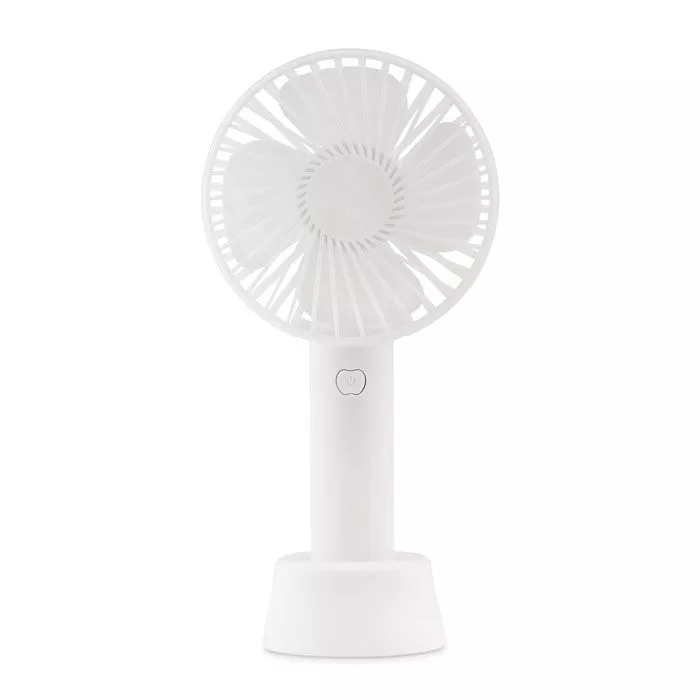 Маленький портативный вентилятор с дополнительной подставкой для использования в качестве настольного вентилятора. 3 уровня скорости. USB-порт аккумуляторная батарея 1200 мАч.