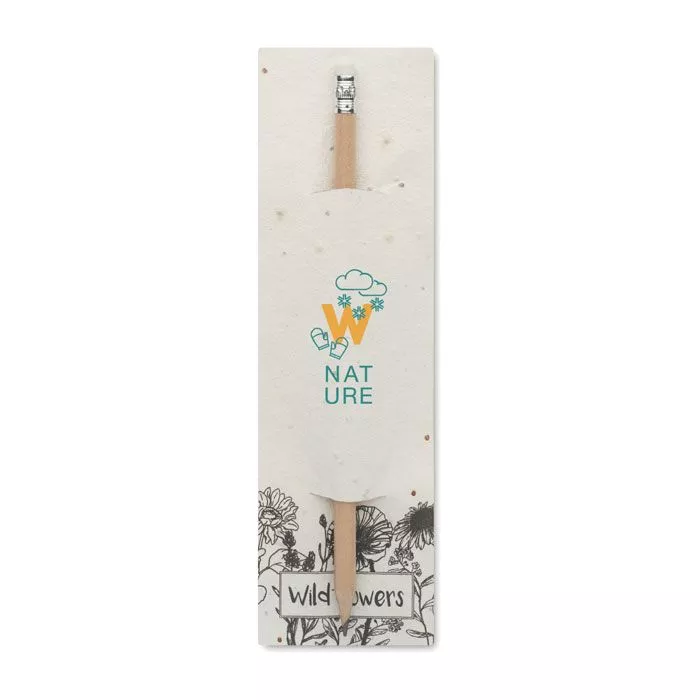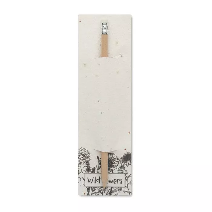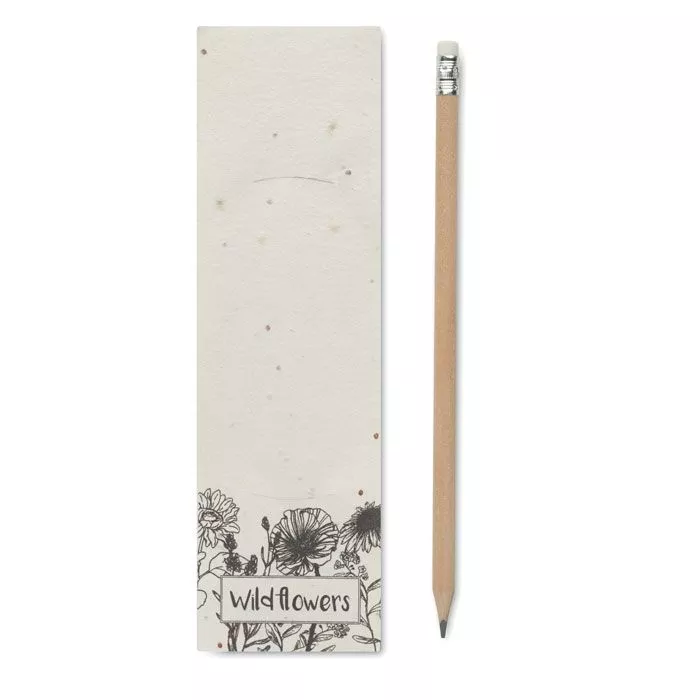 Карандаш из натурального дерева с ластиком. Поставляется в бумажном мешочке с семенами (полевые цветы).