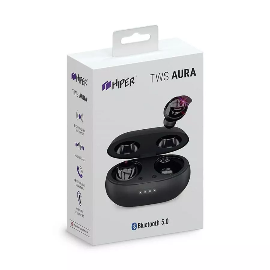 Наушники беспроводные с зарядным боксом HIPER TWS AURA, цвет черный