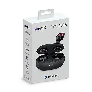 Полностью беспроводная гарнитура (TWS - true wireless stereo) с сенсорным управлением и хорошей эргономикой. HIPER TWS Aura яркая недорогая стерео TWS гарнитура. Качество за разумные деньги. К особенностям модели можно отнести: Сбалансированный чистый звук. Несмотря на невысокую стоимость, гарнитуру отличает чистота звучания во всем звуковом диапазоне. Она подойдет для большинства музыкальных направлений. Время работы гарнитуры 3 часа. Продолжительное время работы в сочетании с быстрым восстановлением заряда от чехла-аккумулятора, позволят вам по-настоящему долго наслаждаться любимой музыкой. Русскоговорящее меню. Все голосовые оповещения на русском языке. Стильный внешний вид. Сочетание глянца в верхней части с soft-touch покрытием внутренней части наушника придает данной гарнитуре изысканности. Удобные многофункциональные кнопки. Удобно управлять гарнитурой, не доставая из кармана телефон. Новая версия Bluetooth 5.0 – отличается энергоэффективностью и помехозащищённостью. Степень пыле и влагозащиты - IP54. Позволит не бояться капризов погоды, вы сможете наслаждаться музыкой в любую погоду. Спецификация: Версия Bluetooth: v.5.0, радиус действия 10 мПоддержка профилей: A2DP v1.3, AVRCP v1.5, HFP v1.7, HSP v1.2, BLE v5.0Емкость аккумулятора наушников: 2*50 мAчЕмкость аккумулятора чехла: 450 мAчВремя зарядки чехла 2 ч Время зарядки наушников 1.5 ч Время работы с учетом зарядки от зарядного чехла: до 20 часов Гарантия: 1 год