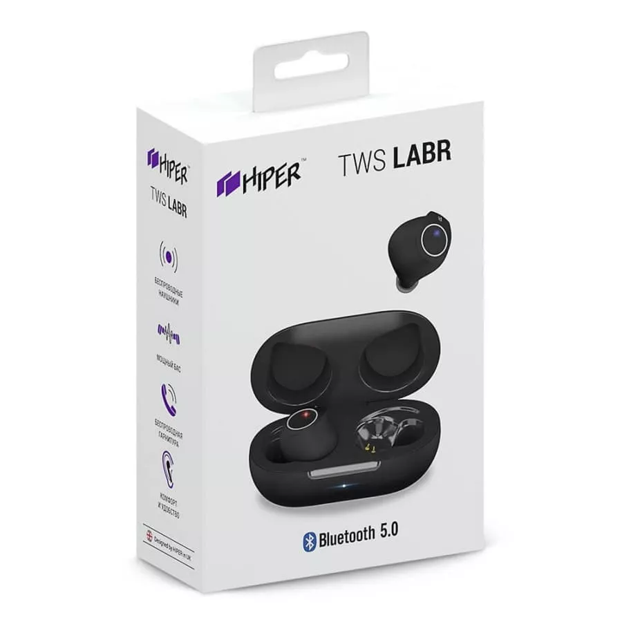 Полностью беспроводная гарнитура (TWS- true wireless stereo) с улучшенной эргономикой и сенсорным управлением. HIPER TWS Labr - классный звук и улучшенная эргономика TWS. К особенностям модели можно отнести: Улучшенная эргономика. Особая направленная форма гарнитуры обеспечивает максимально комфортное расположения наушника в ухе. Новый чипсет Bluetrum для чистого и ровного звука. Гарнитура подойдет для прослушивания разных музыкальных направлений. Увеличенная звукоизоляция и глубокий бас. Благодаря особой форме наушника обеспечивается улучшенная звукоизоляция, что позитивно сказывается на басовой составляющей. Преимущества использования зарядки нового формата – USB Type C. Удобные сенсорные многофункциональные кнопки. Удобно управлять гарнитурой, не доставая телефон из кармана. Версия Bluetooth 5.0 – отличается энергоэффективностью и помехозащищённостью. Больше музыки. Для полного восстановления заряда гарнитуре достаточно 1,5 часа, поэтому если вы слушаете гарнитуру по пути на работу (школу, ВУЗ), заряжать ее можно будет 1-2 раза в неделю. Русскоговорящее меню. Все голосовые оповещения в гарнитуре происходят на русском языке. Степень пыле и влагозащиты – IP54. Позволит не бояться капризов погоды, вы сможете наслаждаться музыкой в любую погоду. Поддержка основных профилей: HSP, HFP, A2DP, AVRCP Cпецификация: Тип устройства: Bluetooth-наушники с микрофоном Подключение: Bluetooth 5.0 Беспроводной стандарт: IEEE 802.15.1, 2.402ГГц – 2.480ГГц Диапазон воспроизводимых частот: 20 Гц – 20000 Гц Поддержка профилей: HSP, HFP, A2DP, AVRCP Радиус действия: 10 м Порт зарядки: USB Type-C 5V 1A Емкость аккумулятора наушников: 100 мАч(2x50 мАч) Емкость аккумулятора кейса: 400 мАч Время работы от аккумулятора в кейсе: 8 ч Время работы: 3 ч Время ожидания: 140 ч Время зарядки: 1.5 ч Гарантия 1 год