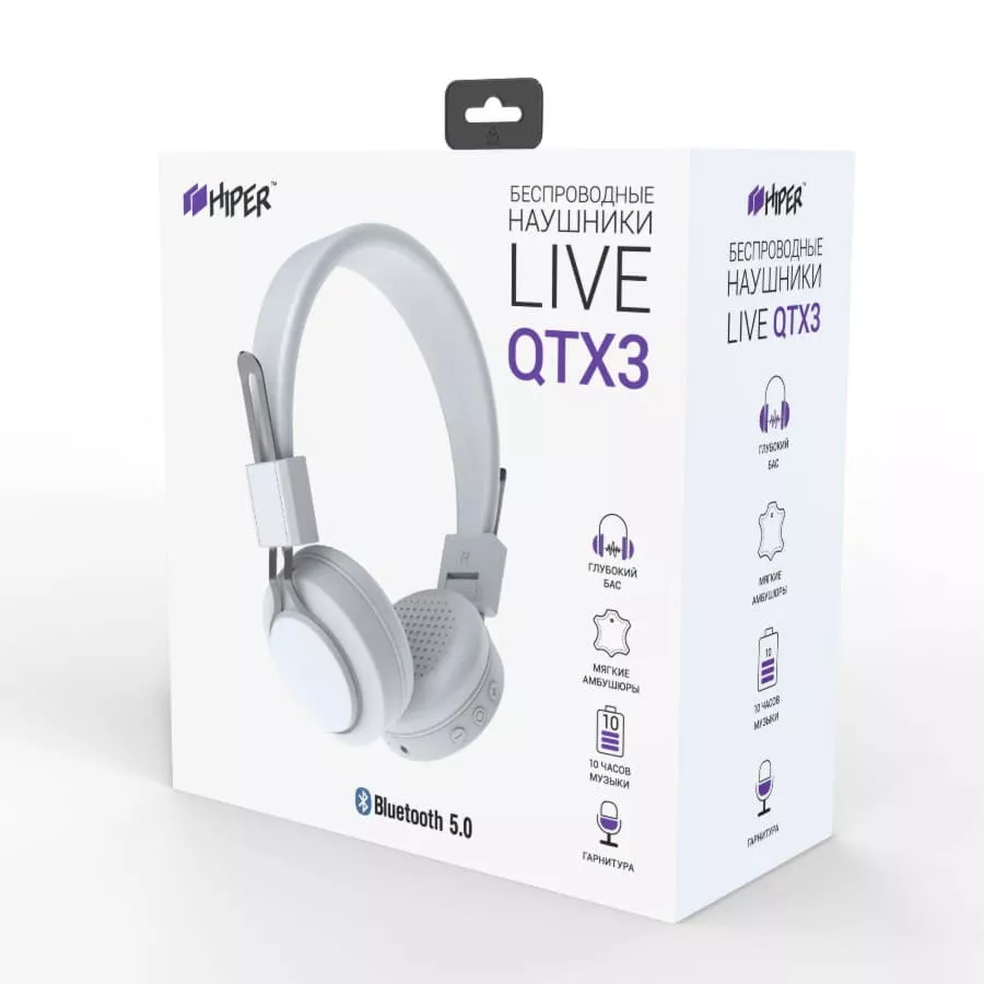 Наушники головные беспроводные Hiper LIVE QTX3, белые