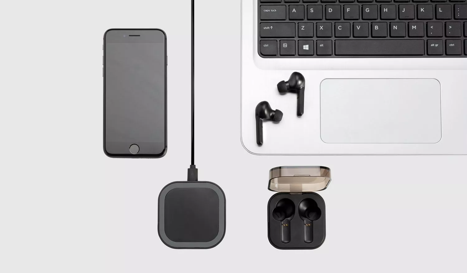 С беспроводными наушниками TWS вас ждет абсолютная свобода при прослушивании вашей любимой музыки. Просто подключите оба ABS наушника, чтобы слушать музыку в стереорежиме и отвечать на звонки (моно). Наушники поставляются в стильном чехле, который можно подзаряжать без проводов при помощи идущего в комплекте зарядного устройства мощностью 5W. Этим устройством вы также можете заряжать свой мобильный телефон. Беспроводная зарядка совместима со всеми устройствами с поддержкой QI*, такими как Android последнего поколения, iPhone 8 и выше. В комплект входит micro USB кабель длиной 150 см. Наушники оснащены Bluetooth 4.2 для стабильного подключения и аккумулятором 50 mAh, который позволяет слушать музыку до 3 часов и может быть полностью заряжен при помощи чехла за 2 часа. Работают на расстоянии до 10 метров. В наборе есть ушные вкладыши разных размеров. Вход: 5V/1A. Беспроводной выход: 5V/1A. *Qi — стандарт, разработанный Консорциумом беспроводной электромагнитной энергии для индукционной