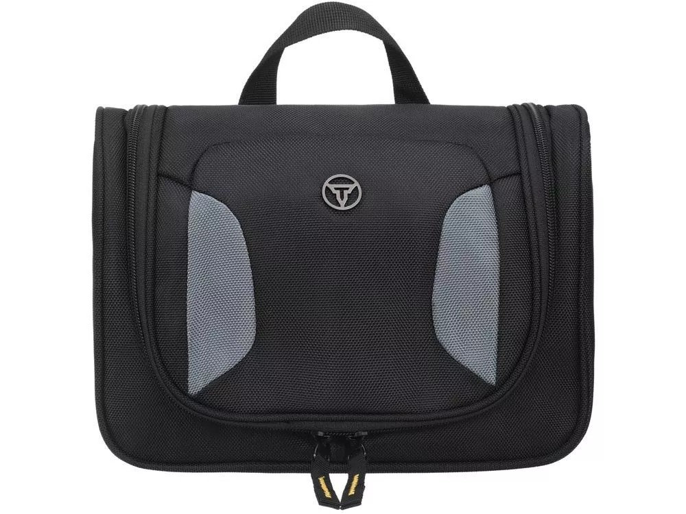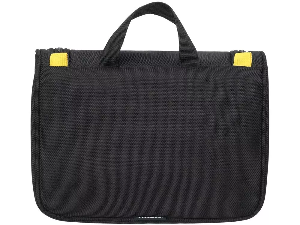 Вместительный дорожный несессер от TORBER предназначен для безопасного хранения и удобной транспортировки различных аксессуаров и принадлежностей. Компактный несессер обладает оптимальным размером – 27х11х22 см, его удобно брать в дорогу и размещать в багаже. Несессер выполнен из высокопрочного полиэстера в чёрном цвете с серыми вставками, обладает устойчивостью к различным загрязнителям и относительной влагонепроницаемостью. Основное отделение имеет широкий клапан на молнии с двумя бегунками. Несессер содержит 6 различных по назначению и объёму внутренних отделений на молнии и 4 эластичных держателя. С внешней стороны расположены эргономичная ручка для переноски и крючок для подвешивания несессера