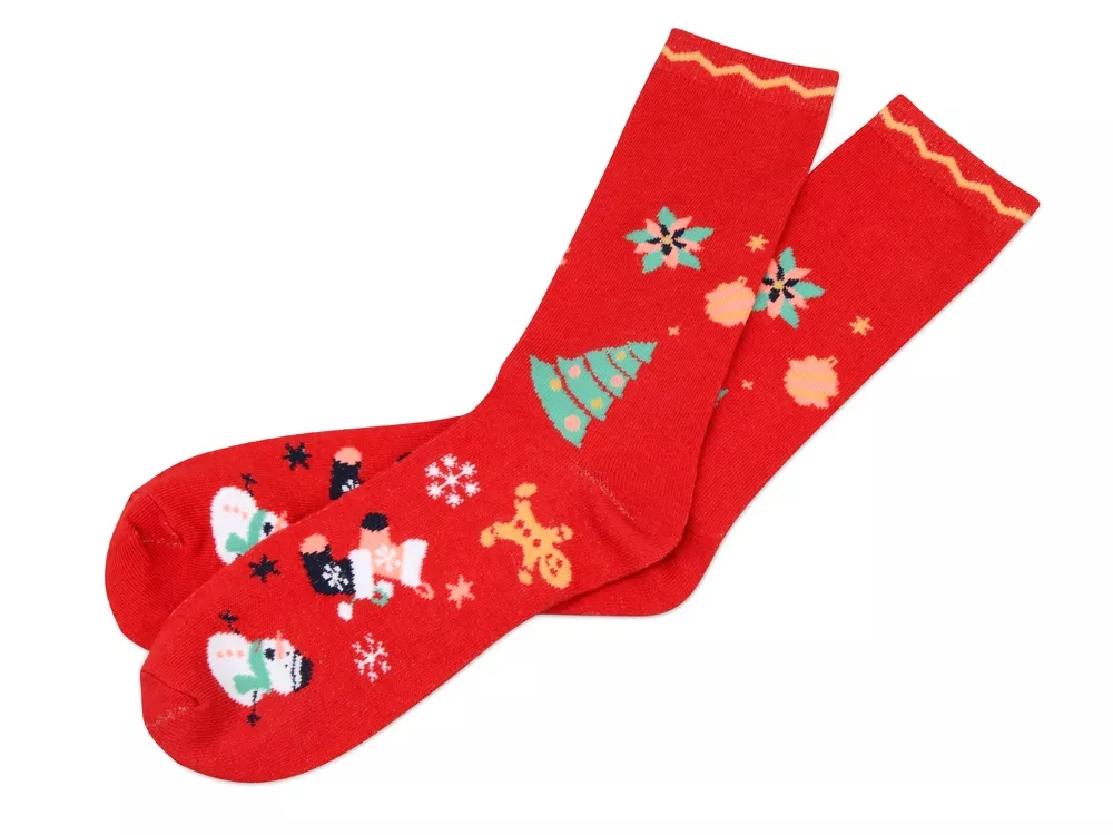В фильмах на рождество принято вешать носки над камином, в которые Санта Клаус раскладывает подарки. Предлагаем вам новинку нашего каталога адаптированную для российской елки. Носки, упакованные в милый шарик, можно повесить на елку в качестве дополнительного подарка. Оригинальный дизайн с тематическими рождественскими принтами порадует как хипстера, так и приверженца офисного стиля. Яркие носки со строгим костюмом один из современных трендов. Дарите стильные новогодние подарки. Размер 25-28 см