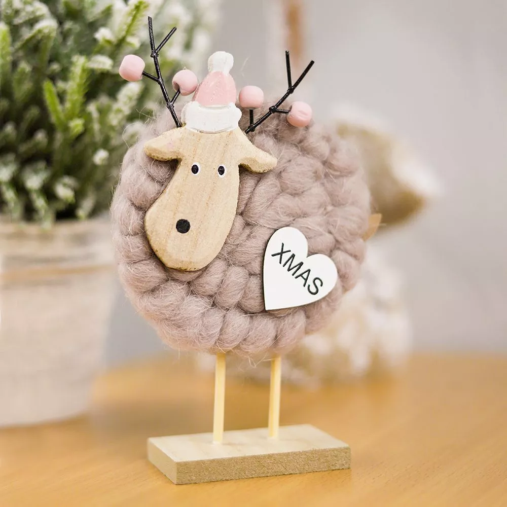 Новогоднеее украшение рождественские олени Магиш - выполнены из текстильных материалов. Деревянная подставка.
