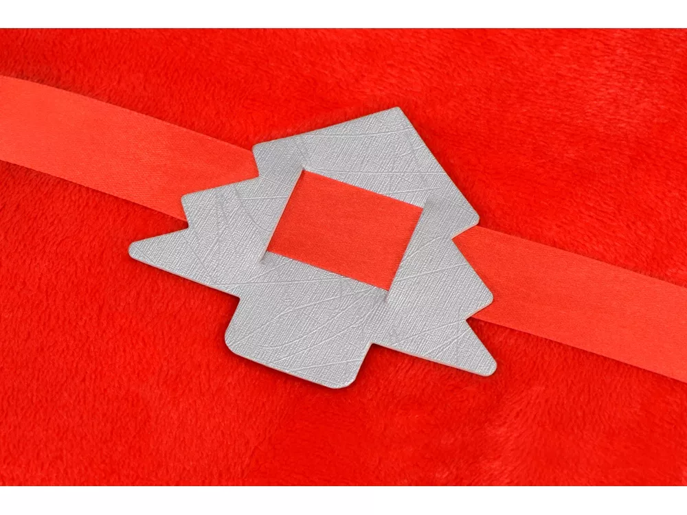 Отличная идея для персонализации новогодних подарков и пледов. С помощью специальных прорезей по бокам бирка надежно крепится с ленте, которой перевязан плед, и выглядит, как новогодняя игрушка.