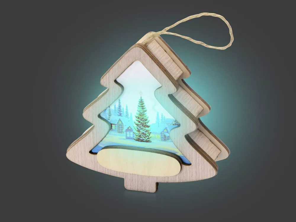 Новогодняя подвеска для елки станет прекрасным вариантом подарка: посмотрите, эти игрушки видно не только при свете дня, но и в темноте, ведь они могут светить сами! Игрушка с подсветкой выполнена из фанеры, фрагмент с изображением — напечатан на пропускающем свет материале. Подвеска сияет мягким разноцветным светом, подчеркивая пейзаж. Станет прекрасным вариантом для подарка, который будет радовать ваших адресатов долгие годы, каждую зиму красуясь на зеленых лапах елки. Гравировка (оптоволоконный лазер) (Без чернения) на данный товар осуществляется бесплатно. Оплачивается только настройка оборудования в размере 900 рублей на весь тираж.