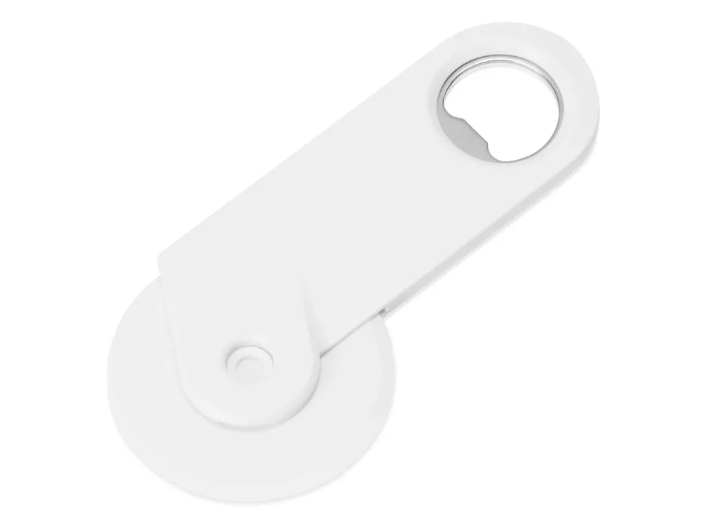 Нож для пиццы оснащен открывалкой для бутылок, и это действительно удобно: признайтесь, вы точно теряли открывалки в квартире, а потом безуспешно искали их и откупоривали пиво грубой силой. Теперь два приспособления объединены в одно, а значит, ничто не будет вас отвлекать от дружеских посиделок за пиццей! Пользоваться и ножом, и открывалкой легко и просто, никаких инструкций не потребуется. Белый цвет выбран не случайно: на нем почти любое лого будет выделяться наилучшим образом. Тампопечать (1 цвет (белые изделия)) на данный товар осуществляется бесплатно. Оплачивается только настройка оборудования в размере 3600 рублей на весь тираж.