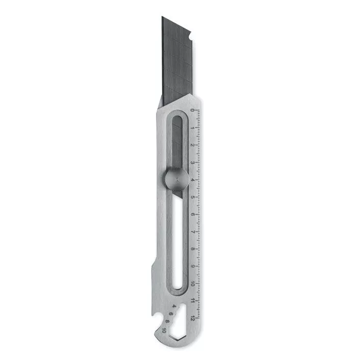 Выдвижной канцелярский нож из нержавеющей стали с 8 лезвиями, открывалкой для бутылок, гаечным ключом и линейкой.