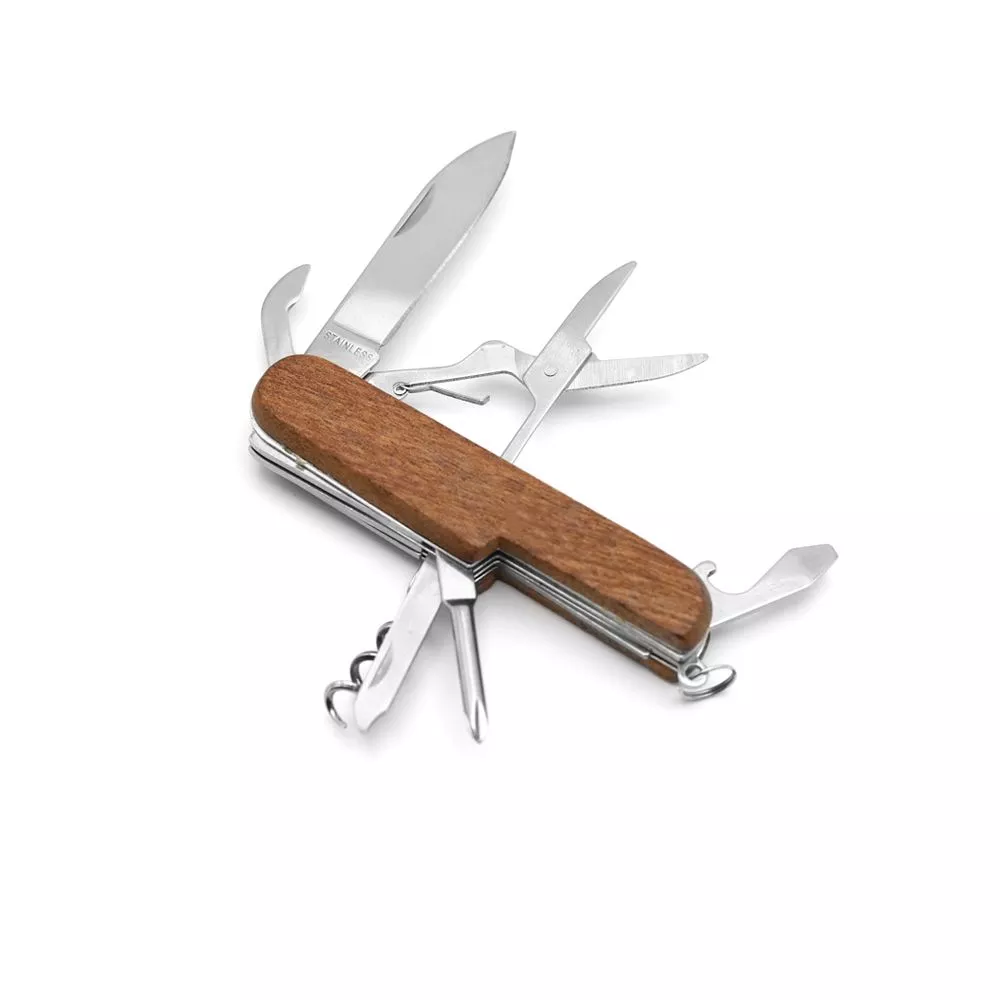 Многофункциональный складной нож – стильный и эргономичный девайс, который поместится у вас на ладони и пригодится в любой ситуации. В поезде, походе, путешествии этот компактный набор необходимых инструментов поможет вам справиться с самыми неожиданными сюрпризами. Нож включает в себя: Штопор, Нож, Пилочка, Крестовая отвертка, Ножницы, 2 открывашки. Можно охарактеризовать двумя словами – удобный и функциональный.