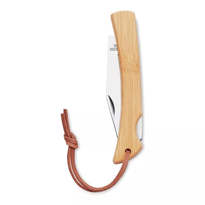 Складной нож из нержавеющей стали 2CR13 с бамбуковой рукояткой и шнурком из полиуретана.