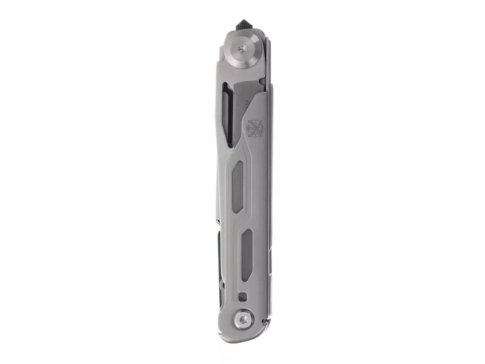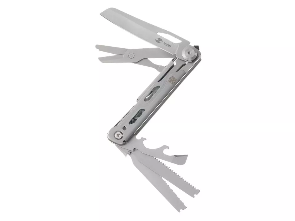 Нож перочинный STINGER имеет 9 функций: 1. Лезвие с фиксатором клинка Liner Lock 2. Ножницы 3. Пила 4. Лезвие с серрейторной заточкой 5. Открывалка для бутылок 6. Консервный нож 7. Инструмент для снятия изоляции 8. Стеклобой 9. Клип ХАРАКТЕРИСТИКИ Материалы • лезвие/инструменты: нержавеющая сталь 440A, твердость 54-58 HRC • рукоять: нержавеющая сталь 440A, твердость 54-58 HRC Размеры • Размеры ножа: 112х20х25 мм • Общая длина: 185,5 мм • Длина клинка: 79,3 мм • Наибольшая ширина клинка: 17 мм • Толщина обуха: 2,5 мм • Длина рукояти: 111,3 мм • Ширина рукояти (в ср.части): 19,4 мм • Толщина рукояти (в ср.части): 18,9 мм Вес: 141 г Цвет: серебристый Упаковка: картонная коробка