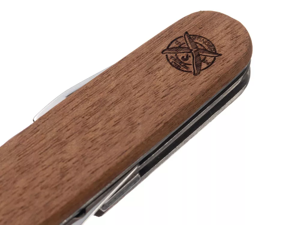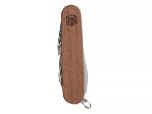 Нож перочинный STINGER имеет 10 функций: 1. Большое лезвие 2. Консервный нож с: 3. – Малой отвёрткой 4. Шило с: 5. – Иглой 6. Штопор 7. Открывалка для бутылок с: 8. – Отвёрткой 9. – Инструментом для снятия изоляции 10. Кольцо для ключей ХАРАКТЕРИСТИКИ Материалы: • лезвие/инструменты: нержавеющая сталь AISI 420, твердость 44-48 HRC • рукоять: нержавеющая сталь AISI 420, твердость 44-48 HRC • накладки рукояти: АБС-пластик Размер: 90 мм Вес: 63 г Цвет накладок рукояти: коричневый Накладки рукояти ножа не подлежат замене. Упаковка: картонная коробка