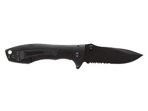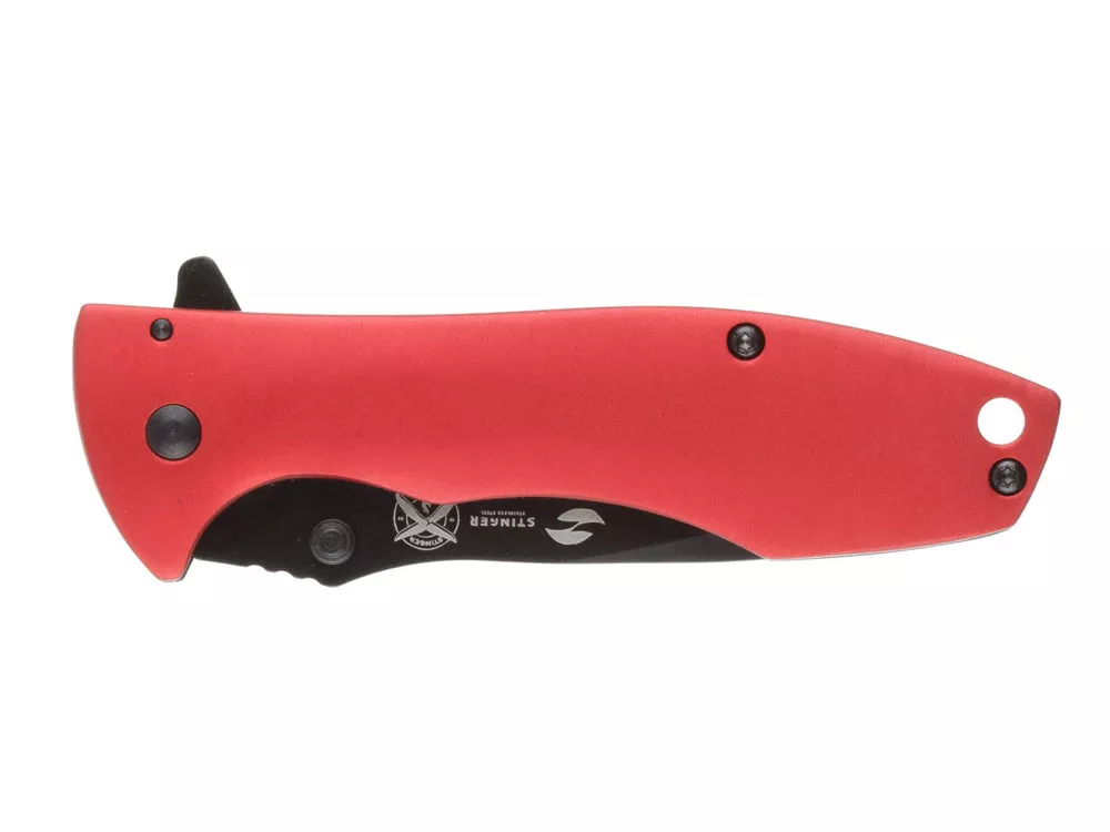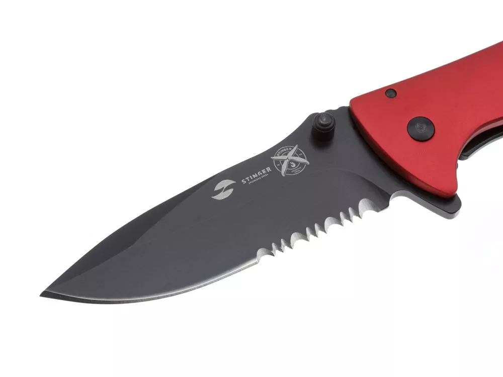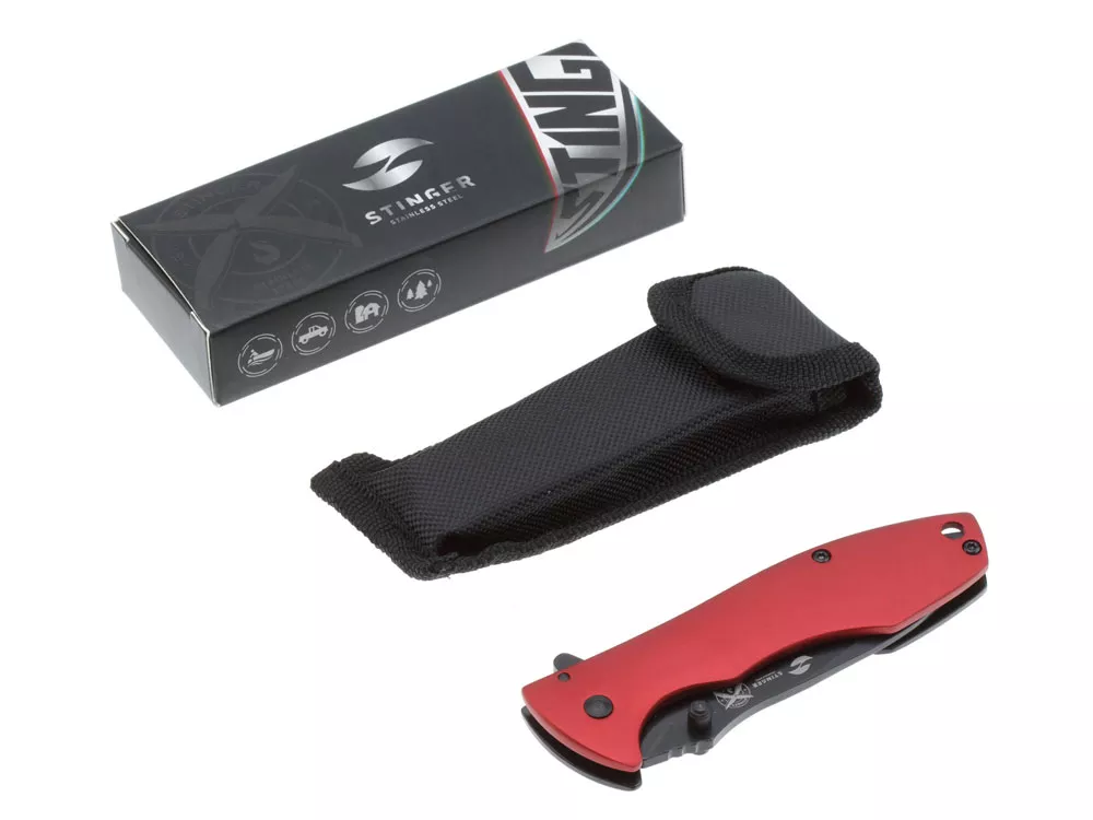 НОЖ СКЛАДНОЙ STINGER Материал лезвия: нержавеющая сталь марки 3Cr13 Материал рукояти: сталь + алюминий Фиксатор лезвия: Frame Lock Длина ножа: 185 мм Длина клинка: 80 мм Толщина клинка: 3 мм Вес: 103 г Цвет рукояти: матовый красный Особенности: лезвие с серрейторной кромкой, рукоять с клипом и отверстием под темляк Метод открывания клинка: шпенёк (подпальцевый упор на лезвии) В комплекте: нейлоновый чехол