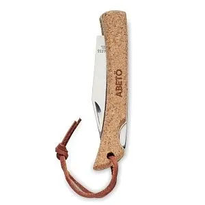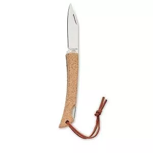 Складной нож из нержавеющей стали с пробковой ручкой и шнурком из полиуретана.