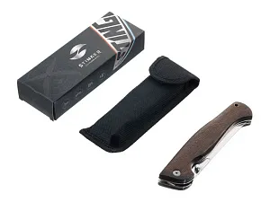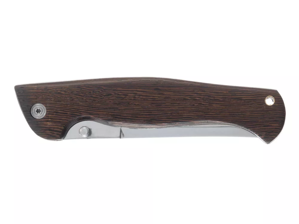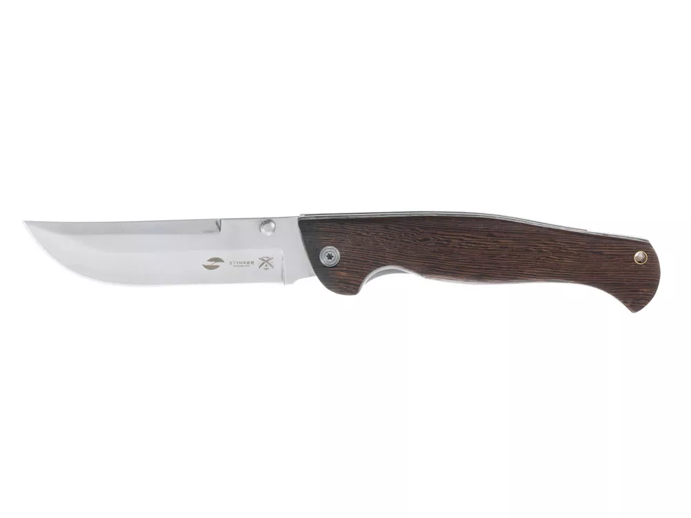 НОЖ СКЛАДНОЙ STINGER Материал лезвия: нержавеющая сталь марки 420 Материал рукояти: древесина венге Фиксатор лезвия: Liner Lock Длина ножа: 258 мм Длина клинка: 112 мм Толщина клинка: 3 мм Вес: 170 г Цвет рукояти: коричневый Метод открывания клинка: шпенёк (подпальцевый упор на лезвии) Особенности: с отверстием под темляк В комплекте: нейлоновый чехол
