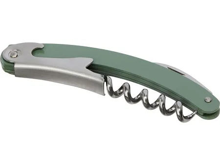 Складной нож из нержавеющей стали с цветным корпусом с обрезчиком для фольги и открывалкой для бутылок. Нержавеющая сталь.