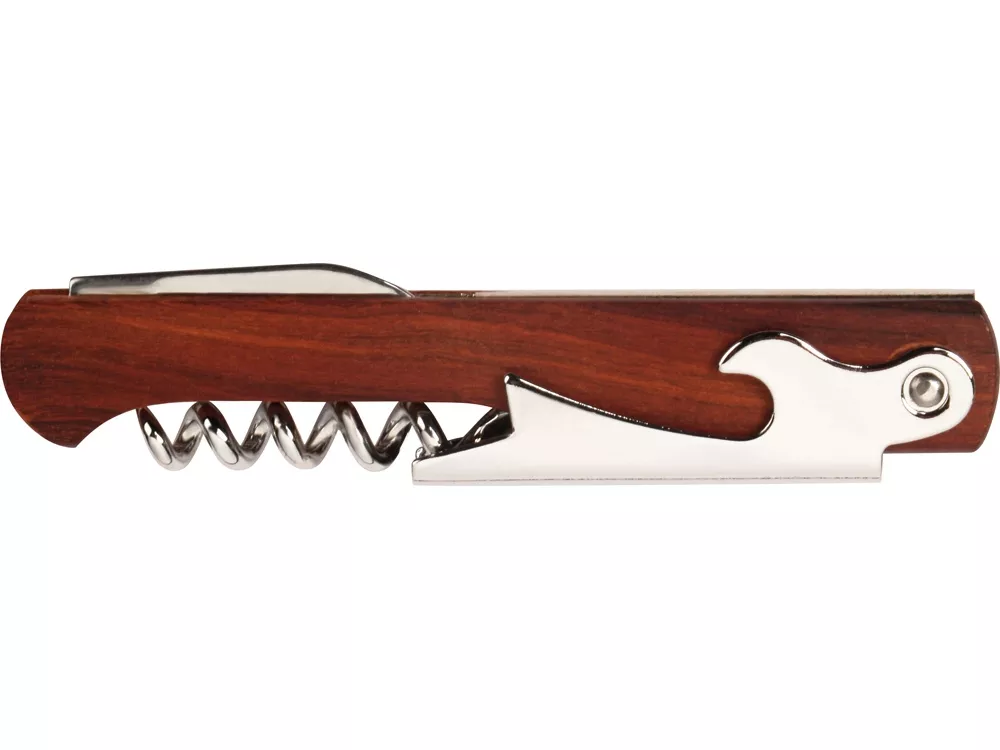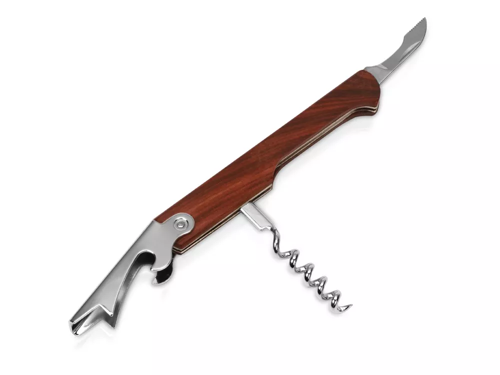 Компактный складной штопор Wine expert - аксессуар, который пригодится, как дома, так и во время отдыха на природе. В штопоре также имеется небольшой ножик и открывалка для бутылок. Выполнен в деревянном корпусе, который выглядит стильно и эргономично. Гравировка (Без чернения) на данный товар осуществляется бесплатно. Оплачивается только настройка оборудования в размере 500 рублей на весь тираж.