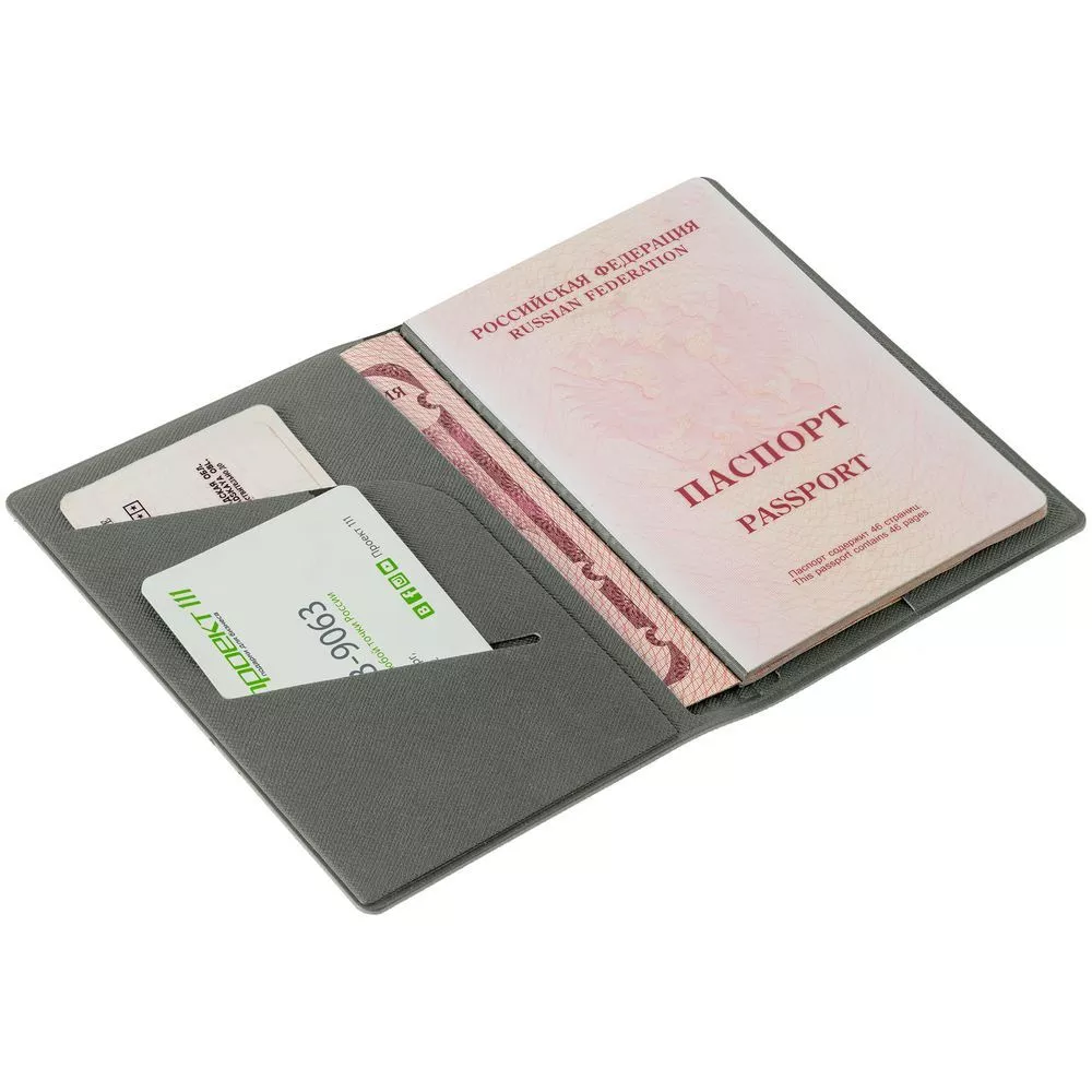 Обложка из искусственного материала, имитирующего сафьяновую кожу, с дополнительными карманами для визиток, полиса ОМС или записок.