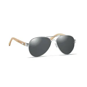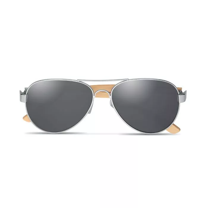 Солнцезащитные очки с бамбуковыми дужками и цветными зеркальными линзами в чехле из микрофибры. Защита UV400.