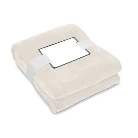 Одеяло из фланелевого флиса RPET плотностью 280 гр/м², обернутое лентой и картой с печатью.