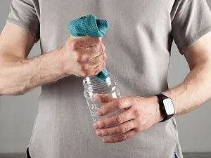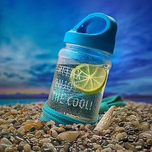 Бутылка снабжена крышкой с ручкой-карабином, изготовлена из экологически безопасного термопластика и может использоваться для питьевой воды температурой до 60 °C.