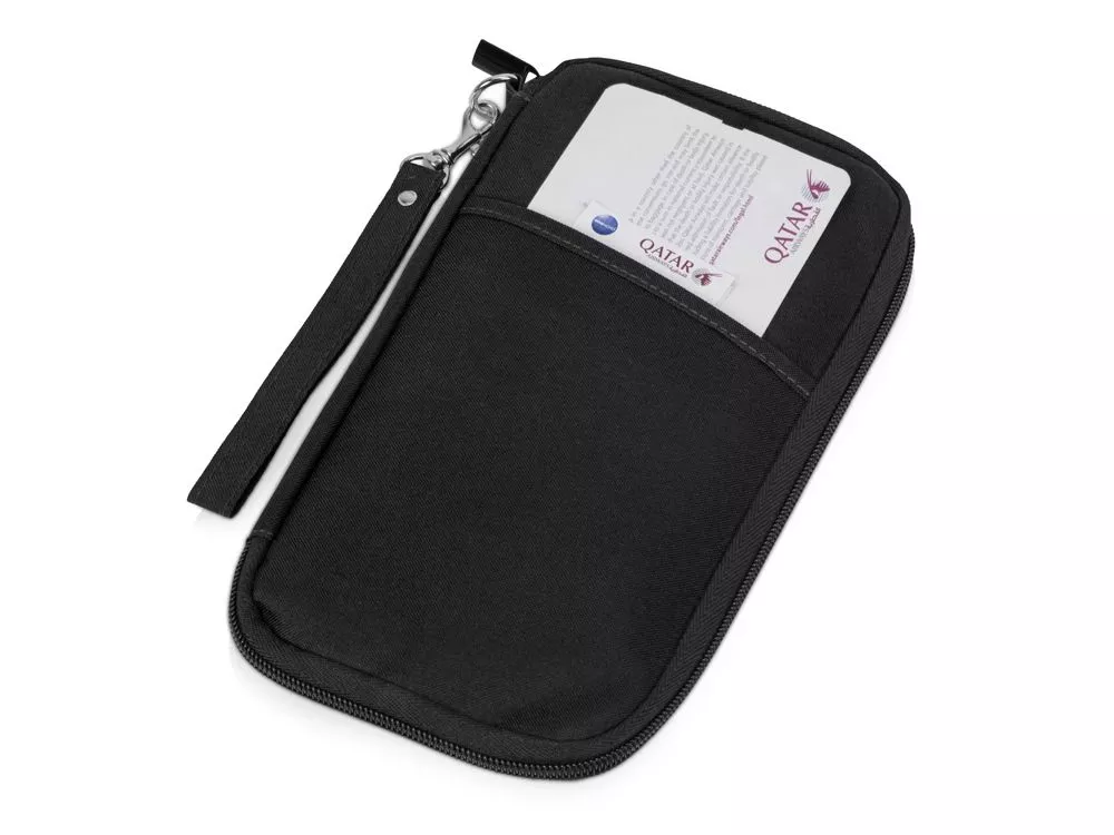 Органайзер для документов Keep Safe – незаменимый аксессуар для современного путешественника. Он позволяет держать под рукой все важные документы и легко извлекать их при необходимости. Изготовлен из плотного текстиля, который устойчив к износу и при необходимости легко чистится. • Несколько отделений разной формы позволяют разместить паспорт, проездные билеты, путевки, пластиковые карточки, удостоверения и другие важные документы • Плотные стенки надежно защищают содержимое от деформации и обеспечивают сохранность документов во время длительной транспортировки • Крепление для ручки фиксирует письменные принадлежности, и они не выпадут при открытии органайзера • Ремешок делает органайзер удобным для переноски в руке Термотрансфер (1 цвет (цветные изделия)) на данный товар осуществляется бесплатно. Оплачивается только настройка оборудования в размере 9200 рублей на весь тираж.