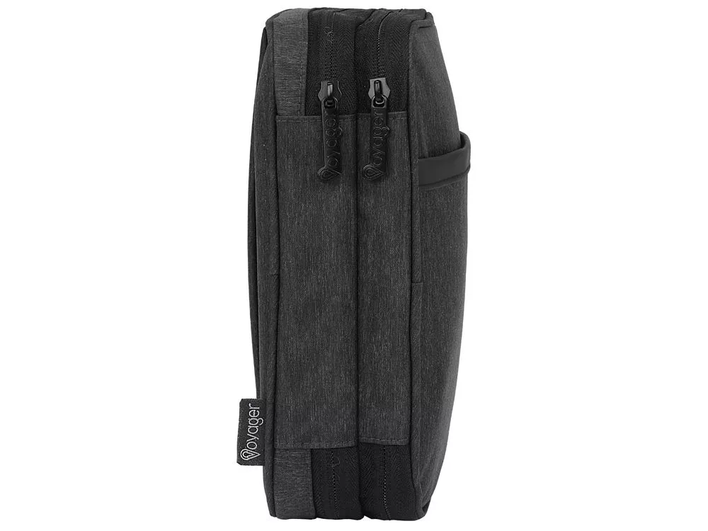 Линейка товаров District создана для людей, которые ценят удобство и комфорт в путешествиях. Коллекцию аксессуаров, сумок и рюкзаков отличают минимализм и внимание к деталям. Органайзер District, Voyager обеспечивает упорядоченное хранение гаджетов, адаптеров, наушников и прочих электронных аксессуаров. Имеет стильный лаконичный дизайн и изготовлен из полиэстера – прочного, не склонного к истиранию и деформированию материала. Модель значительно упрощает пользование электронными аксессуарами в повседневной жизни, отлично подойдет для работы, дома и путешествий. • Два больших отделения с множеством отсеков обеспечивают эргономичное хранение портативных электронных устройств и шнуров. • Секции для проводов надежно фиксируют кабели и предотвращают спутывание между собой. • Ячейки небольших размеров оптимальны для хранения SIM-карт и карт памяти. • Отделение для планшета позволяет хранить его отдельно от других аксессуаров. • Внешний карман подойдет для хранения паспорта, авиабилета и других документов, которые всегда должны быть в зоне доступа. • Удобная крепкая ручка для комфортной переноски.
