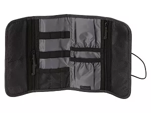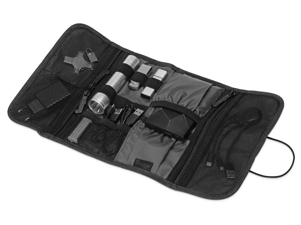 Органайзер District для электроники Voyager с множеством кармашков и отделений позволяет рассортировать девайсы, провода и другие аксессуары для техники удобным вам способом. Органайзер имеет 6 сетчатых кармашков, из них три на молнии, с бегунками, украшенными логотипом бренда. Кроме того, он имеет держатели для проводов и открытые карманы на резинке. Обложка закрывается на резинку, которая зацепляется за круглую пуговицу, и в сложенном виде органайзер весьма компактен, несмотря на свою вместительность. Благодаря форме его можно набить достаточно туго, ведь растягивающаяся резинка на обложке позволяет варьировать степень наполненности органайзера. Термотрансфер (1 цвет (цветные изделия)) на данный товар осуществляется бесплатно. Оплачивается только настройка оборудования в размере 8700 рублей на весь тираж.