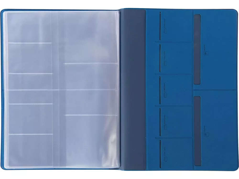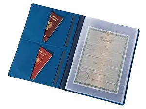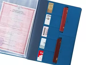 Органайзер формата А4 позволяет хранить документы в расправленном виде, защищая их от механических повреждений. С ним свидетельства о рождении, браке, важные документы, чеки и другие бумаги будут рассортированы и доступны для просмотра, будучи помещенными в прозрачные кармашки из пленки ПВХ шести форматов: 8,5 х 6 см (10 шт), 10 х 10,5 см (6 шт), 15,3 х 10 см (8 шт), 22 х 31 см (8 шт), 22 х 15,5 см(4 шт), 19 х 26,5 см (2 шт). Прозрачные карманы выполнены из прочной фактурной пленки, стойкой к истиранию. Обложка выполнена из экокожи и разбита на множество карманов (два больших кармана-отделения А4 21 х 32 см , 6 горизонтальных кармана 10 х 14 см с подписями и иконками, уточняющими тип документа, который можно поместить внутрь, 5 карманов 6,5 х 5,5 см под визитки или кредитные карты). Тиснение (Блинт) на данный товар осуществляется бесплатно. Оплачивается только настройка оборудования в размере 5800 рублей на весь тираж.
