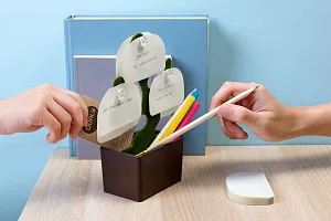 Настольные наборы для офиса – очень полезные штуки. Хороший органайзер для письменного стола заменит кучу маленьких вещей, делая рабочее пространство лаконичнее и просторнее. Органайзер для ручек на рабочий стол от компании Qualy – действительно уникальный товар. С чего же начать? Ну, во-первых, это – отличное стилистическое решение, которое мигом сделает абсолютно любой стол гораздо более приятным. Во-вторых, органайзер соединяет в себе два важных элемента рабочего места, освобождая пространство: держатель для ручек и держатель для заметок. Такой оригинальный и полезный настольный органайзер купить можно в нашем интернет магазине. Основные характеристики: