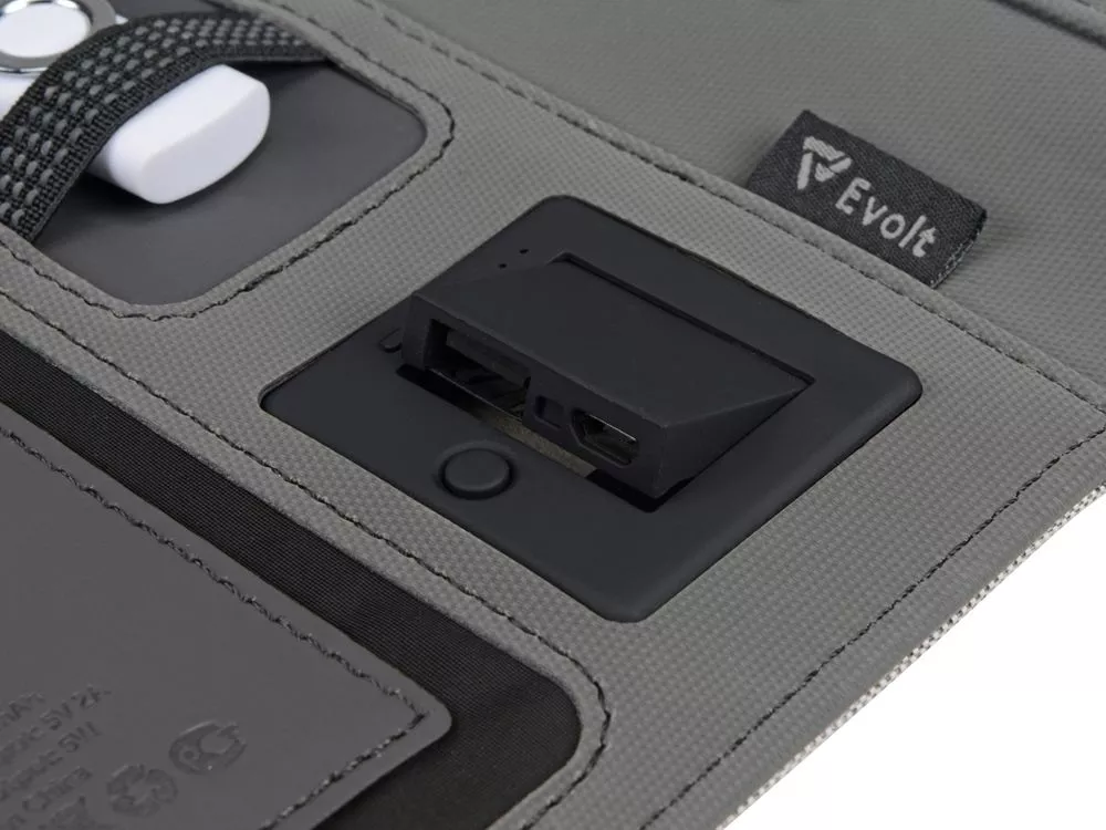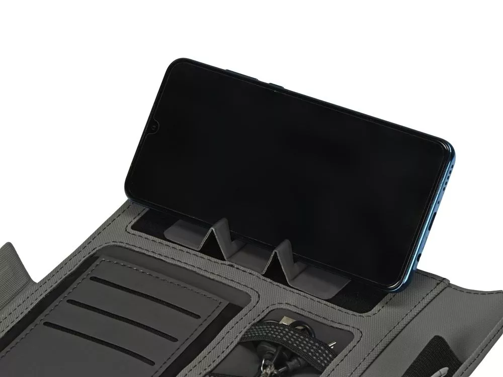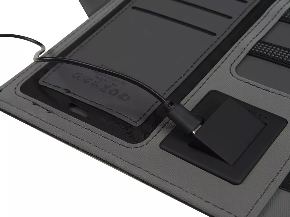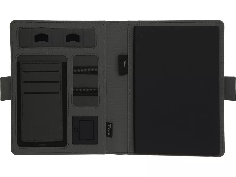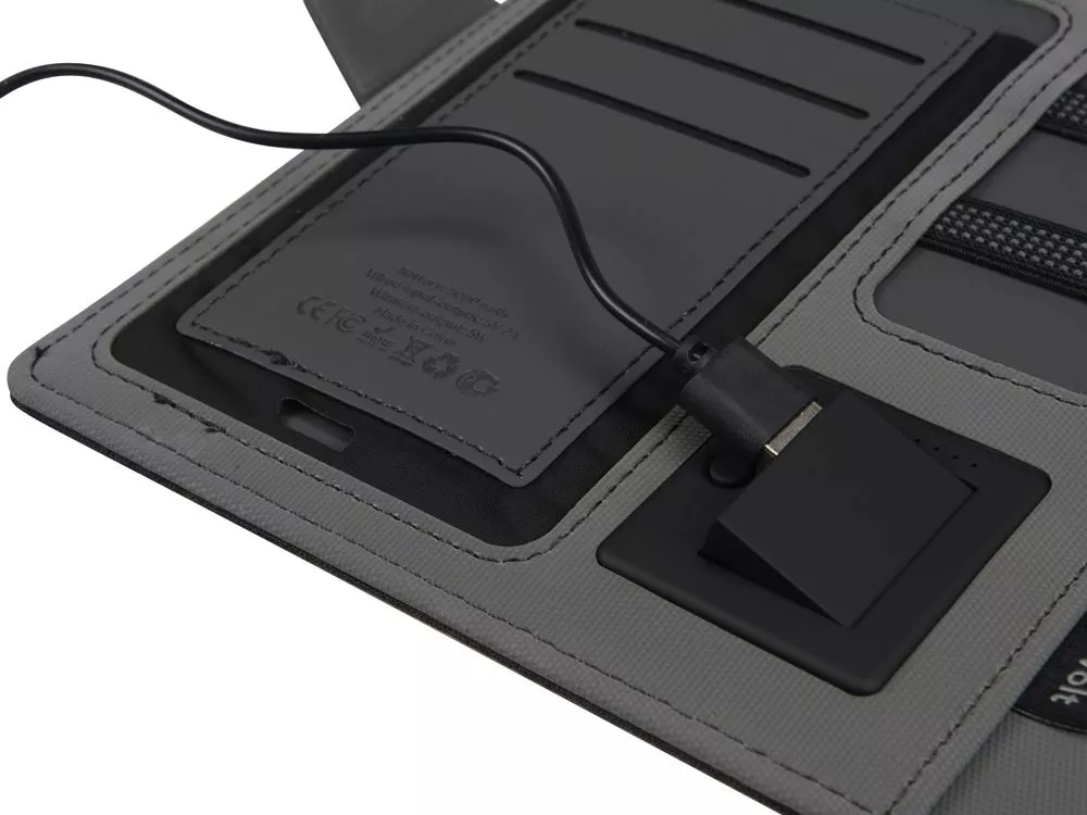 Органайзер Powernote — стильный бизнес-подарок, который в полной мере воплощает идею многофункциональности. С его помощью можно заряжать гаджеты как беспроводным способом, так и через кабель, эргономично хранить целый ряд предметов — от ручек и проводов до кредитных карт — и даже делать записи. Элегантность внешнего вида дополняется приятной текстурой обложки из мягкого полиэстера и высоким качеством внутренней отделки с элементами soft-touch покрытия. Практичный и технологичный аксессуар, который в состоянии заменить сразу несколько вещей. - Встроенный пауэрбанк емкостью 5000 мАh. - Возможность зарядки как беспроводным способом, так и через кабель. - Удобная магнитная застежка. - Качественные материалы. - Отделение для телефона. - Блокнот для записей 64л.
