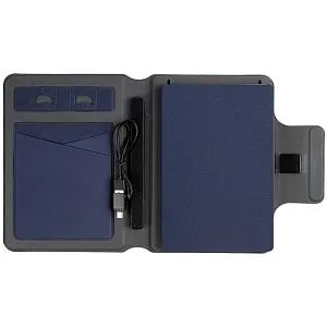 Органайзер с блокнотом и аккумулятором с беспроводной зарядкой. Обложка с фактурой, имитирующей ткань, на магнитной застежке.