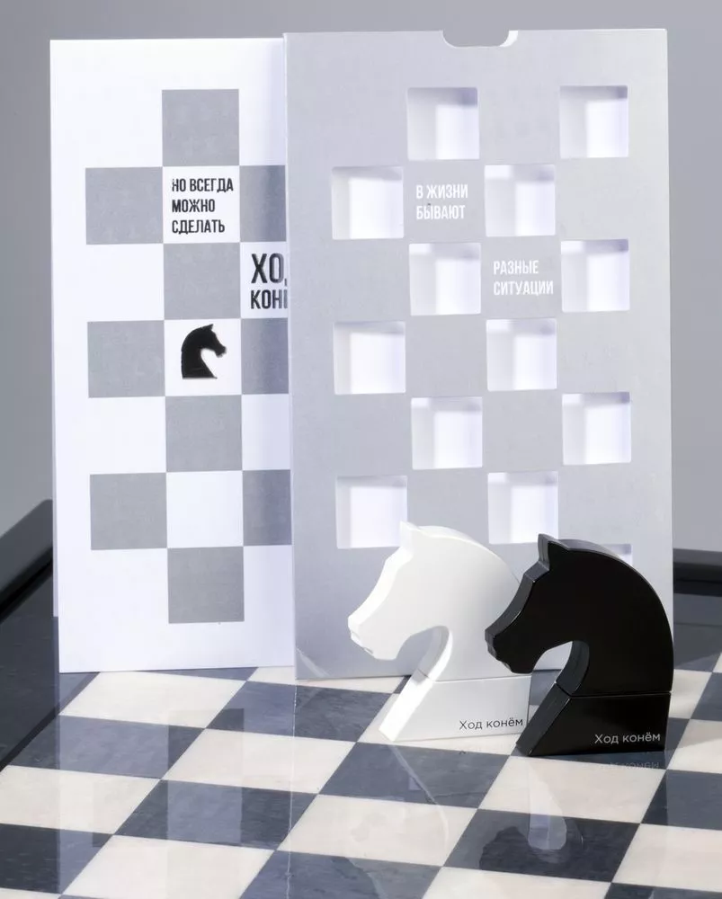 Все, что нужно для успеха в любом деле — совершить в нужный момент «ход конем». Теперь такая возможность есть. Серия «Ход конем» с ярким, эффектным посылом и лаконичным дизайном предназначена для людей и компаний, готовых постоянно двигаться вперед за счет умных решений и стратегических комбинаций.Авторский дизайн "Знаков Внимания"