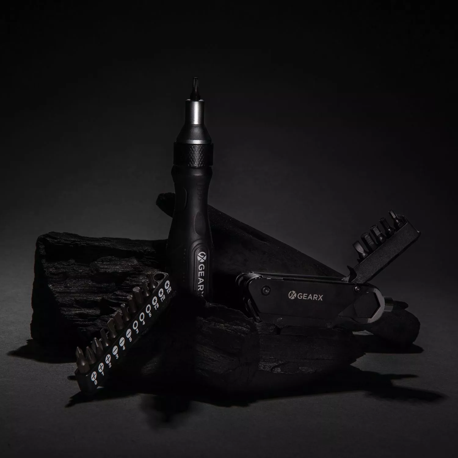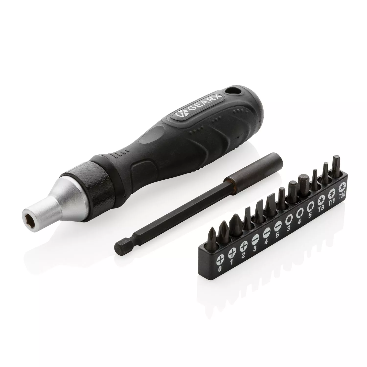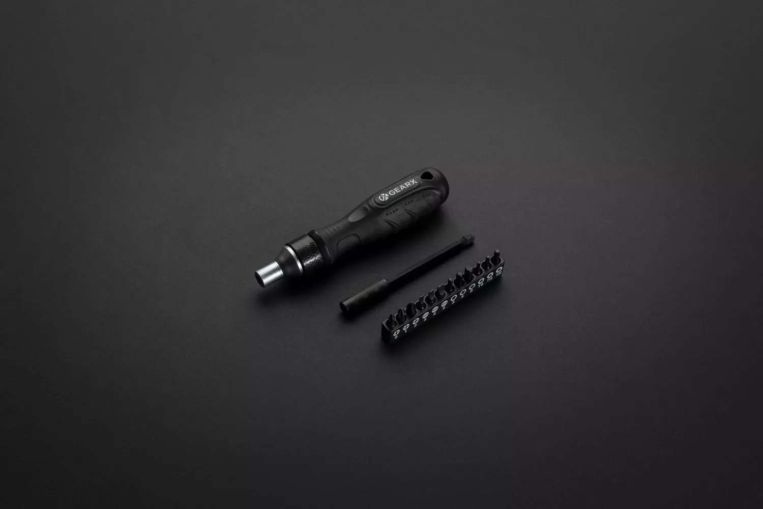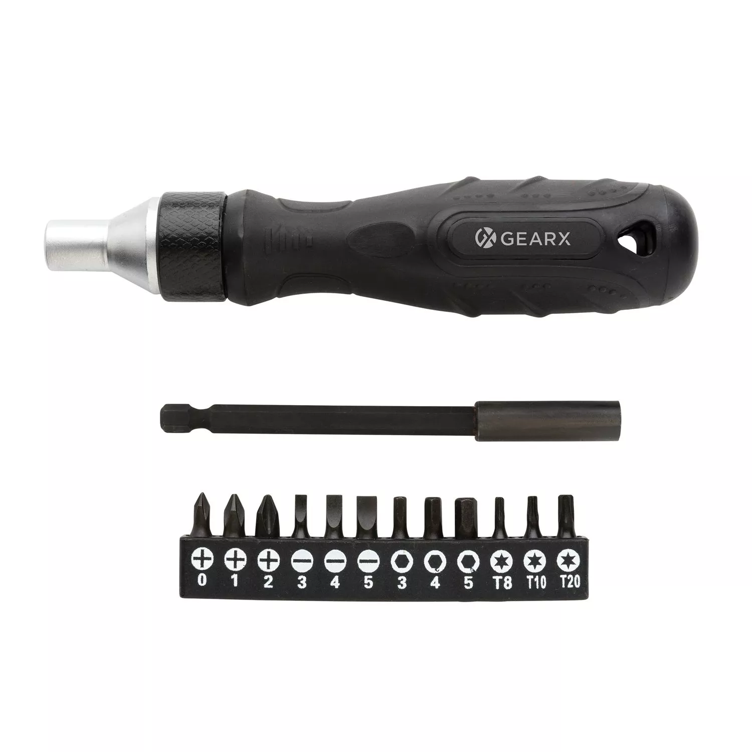 Отвертка с трещоткой Gear X с валом из высококачественной легированной стали S2 и битами. В набор входит несколько бит: PH0/PH1/PH2,SL3/SL4/SL5/HEX3/HEX4/HEX5/TX8/TX10/TX20. Биты легко крепится с помощью очень сильного магнита. Уровень твердости бит 60-62 HRC. Многофункциональная отвертка Gear X будет всегда под рукой и в любой момент будет готова к использованию. Поставляется в стильной подарочной коробке.