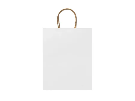 Бумажный пакет 110 г/кв.м натуральной отделки с усиленными короткими ручками витого дизайна.