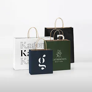 Бумажный пакет плотностью 110 г/м², с усиленными короткими ручками витой формы.
