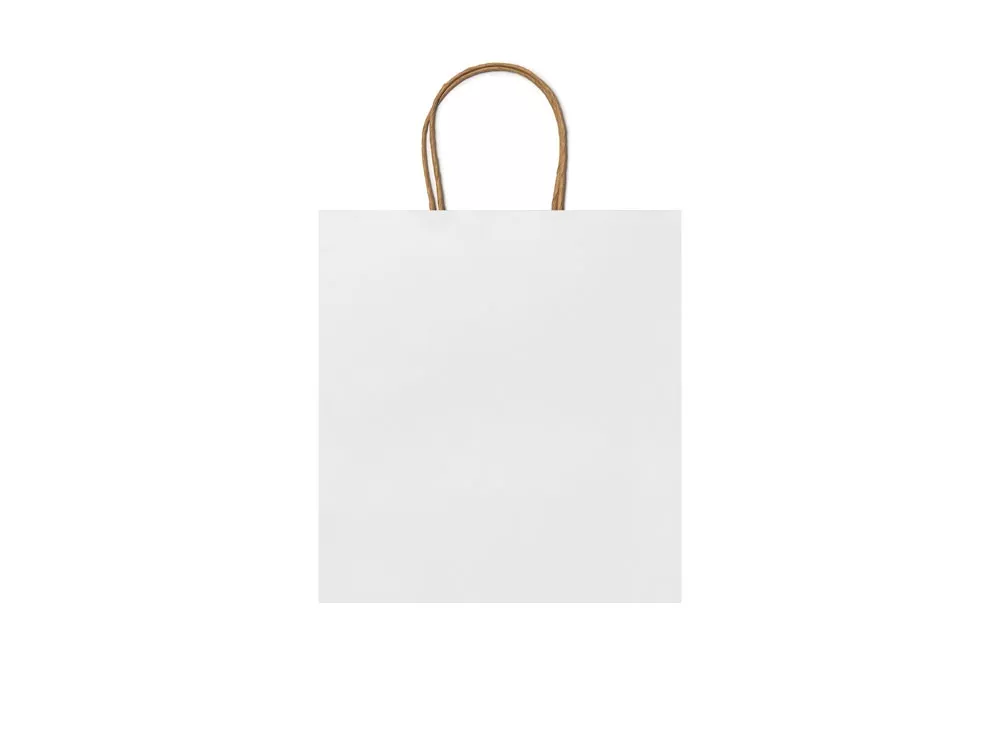 Бумажный пакет 110 г/кв.м натуральной отделки с усиленными короткими ручками витого дизайна.