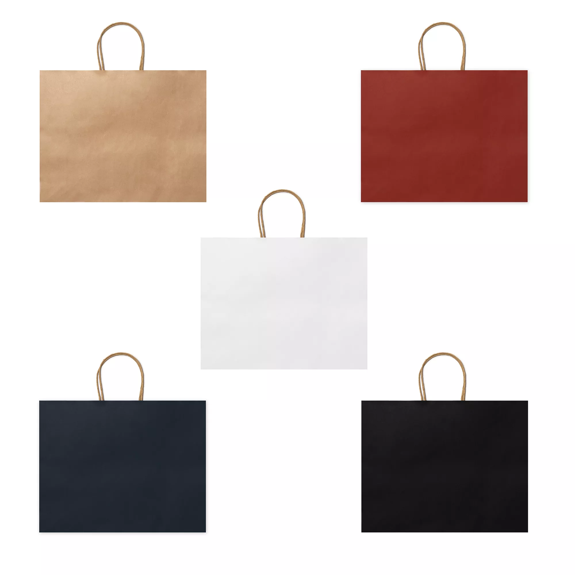 Бумажный пакет плотностью 110 г/м², с усиленными короткими ручками витой формы.