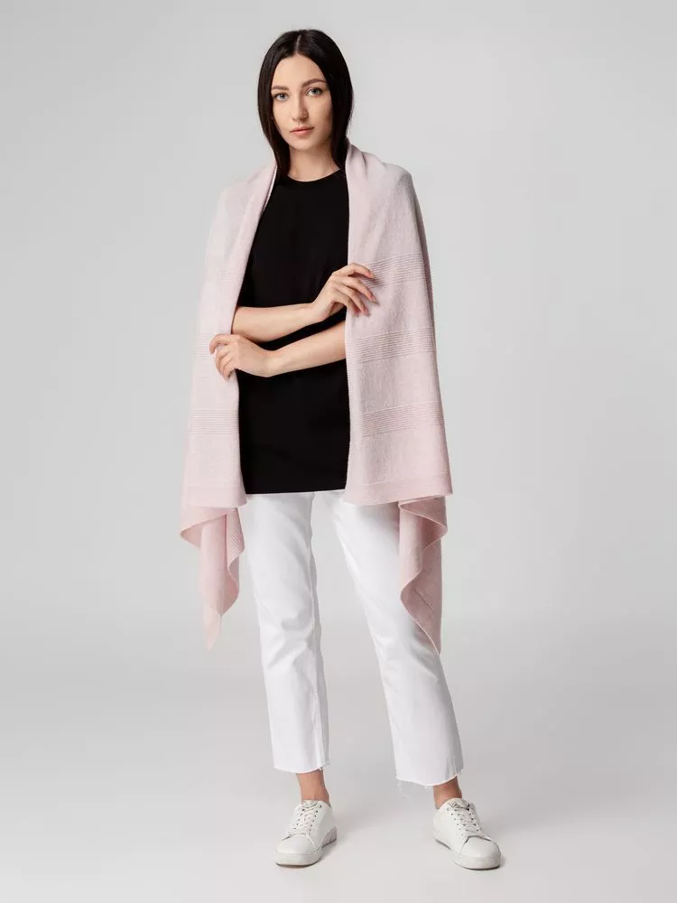 Палантин выполнен из ультратонкой итальянской пряжи из шерсти мериноса с добавлением кашемира и вискозы.
