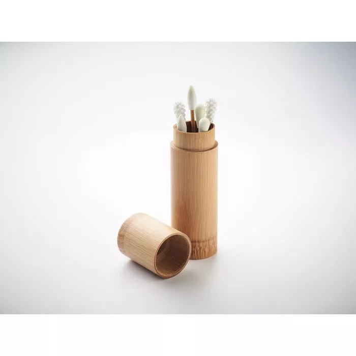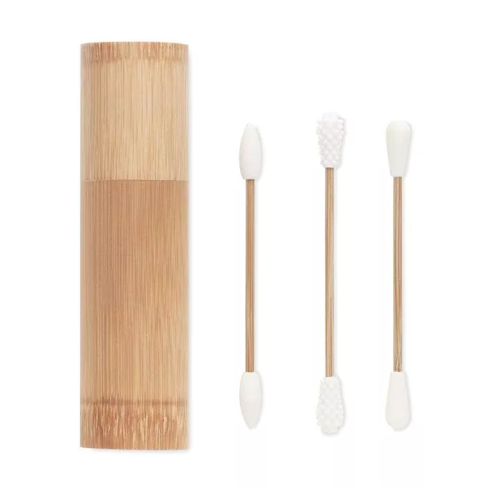 Набор из 6 многоразовых силиконовых двусторонних гигиенических палочек из бамбука. Упакован в бамбуковую коробку.