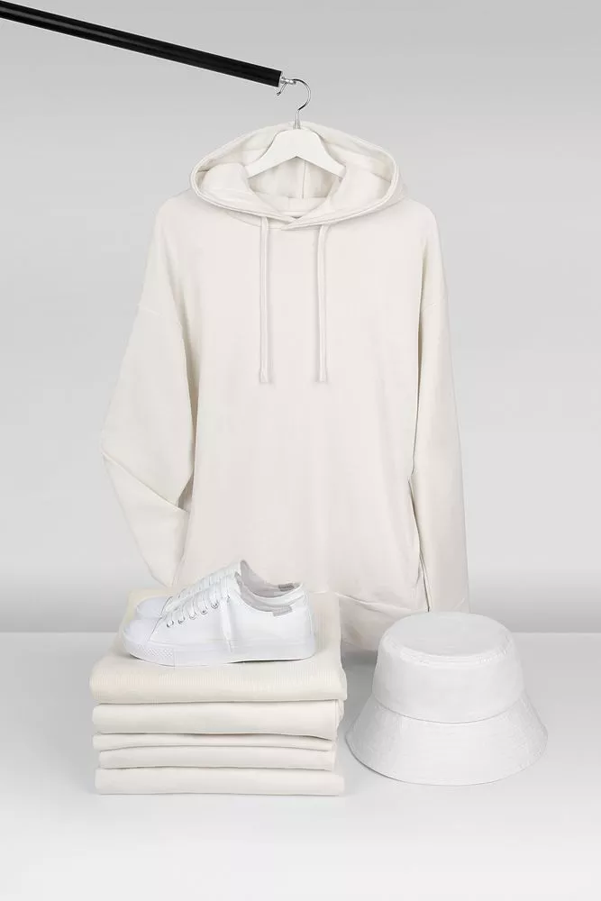 Базовая повседневная одежда актуального покроя в стиле унисекс разработана в рамках единой коллекции и легко собирается в комплекты. Специально спроектированные лекала и технологии пошива открывают простор для любых вариантов кастомизации и нанесения изображений. На изделиях нет лейблов с айдентикой бренда — но предусмотрены петельки для навешивания индивидуальных этикеток.
