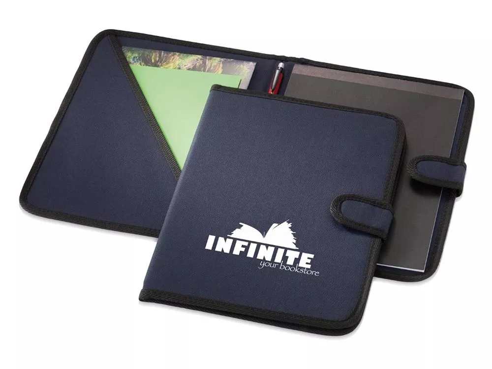 Папка на липучке с держателем для ручки, карманом для документов и блокнотом с 20 страницами линованной бумаги. Ручка и принадлежности не включены.