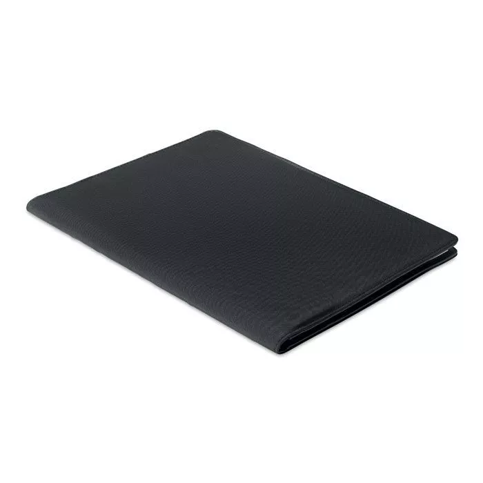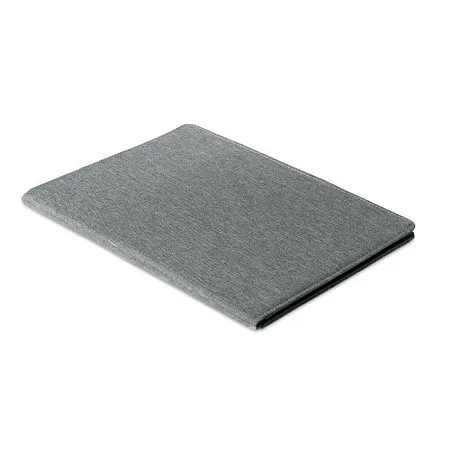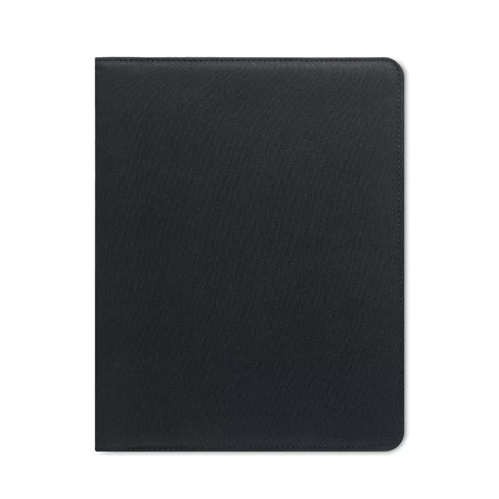 Папка формата A4 из двухцветного материала 300D RPET. Содержит внутренние отделения и петлю для ручки. В комплект входит разлинованный блокнот на 20 листов.