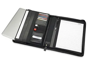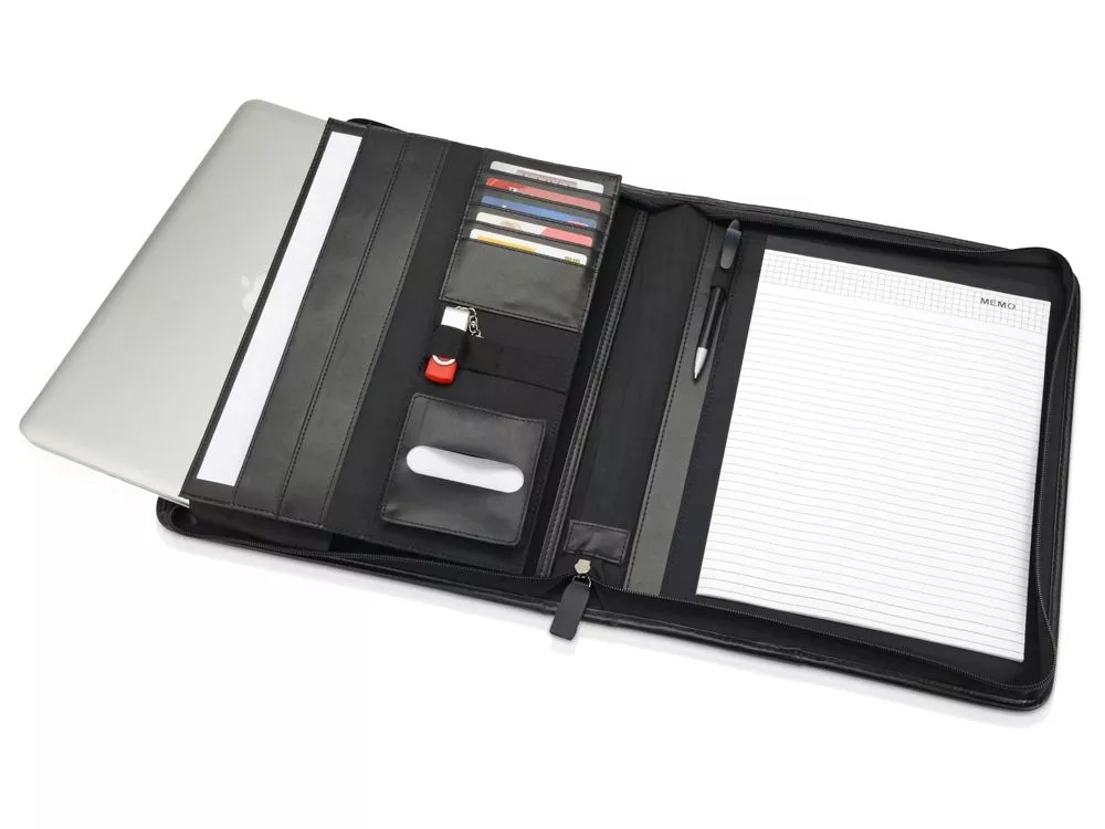 Функциональная и стильная папка для документов будет отличным подарком деловому партнеру. Выполнена из искусственной кожи, на корпус возможно нанесение оригинального тиснение или наложение шильда. Встроенный блок для записей. Удобные карманы для аксессуаров. Особенно удобно уплотненное отделение для планшета. Тиснение (Блинт) на данный товар осуществляется бесплатно. Оплачивается только настройка оборудования в размере 5500 рублей на весь тираж.